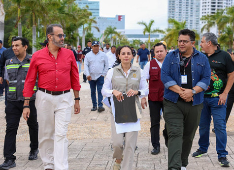 Cancún, Q. Roo, 12 de febrero de 2026.- A sólo unas horas de arrancar el Carnaval Cancún 2026, la presidenta Municipal Ana Paty Peralta realizó un recorrido minucioso por el emblemático Malecón Tajamar, donde se instaló el escenario más grande que ha recibido este espacio, para la presentación estelar de los artistas y a su vez, anunció la presentación del cantante Pablo Montero en la Coronación de Reyes, además de estar presente en los desfiles como el “Rey del Espectáculo”, prometiendo llenar la ciudad de alegría y diversión durante las fiestas carnestolendas.