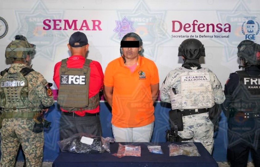 Cancún, Q. Roo, 26 de marzo de 2026.– En posesión de más de más de 80 bolsitas con droga, policías preventiva detuvieron a una mujer en la Región 247 de este Municipio de Benito Juárez, por lo que fue puesta a disposición del Ministerio Público bajo el delito contra la salud.