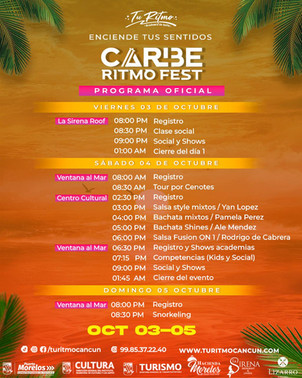 “Para todo el público, y de manera abierta, tendremos un gran sábado de baile en la explanada del Parque Fundadores, frente a la Ventana al Mar, totalmente gratuita, con música en vivo. Todos podrán vivir con su pareja la emoción y disfrutar los ritmos que se tocarán en este gran Caribe Ritmo Fest”, afirmó.