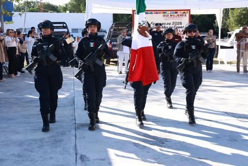 Isla Mujeres, Q. Roo, 4 de febrero de 2026.- En el marco de la ceremonia de honores a la bandera del mes de febrero, la cual se realizó en las instalaciones de la Secretaría Municipal de Seguridad Ciudadana (SMSC), se dieron a conocer los logros más relevantes en materia de seguridad en Isla Mujeres.