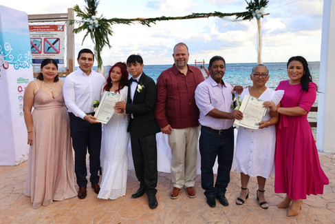 Los enlaces matrimoniales estuvieron a cargo del Oficial 01 del Registro Civil Sergio Eduardo Arceo Foyo que bajo las leyes de Quintana Roo que le sin conferidas legalizó la unión de las parejas.